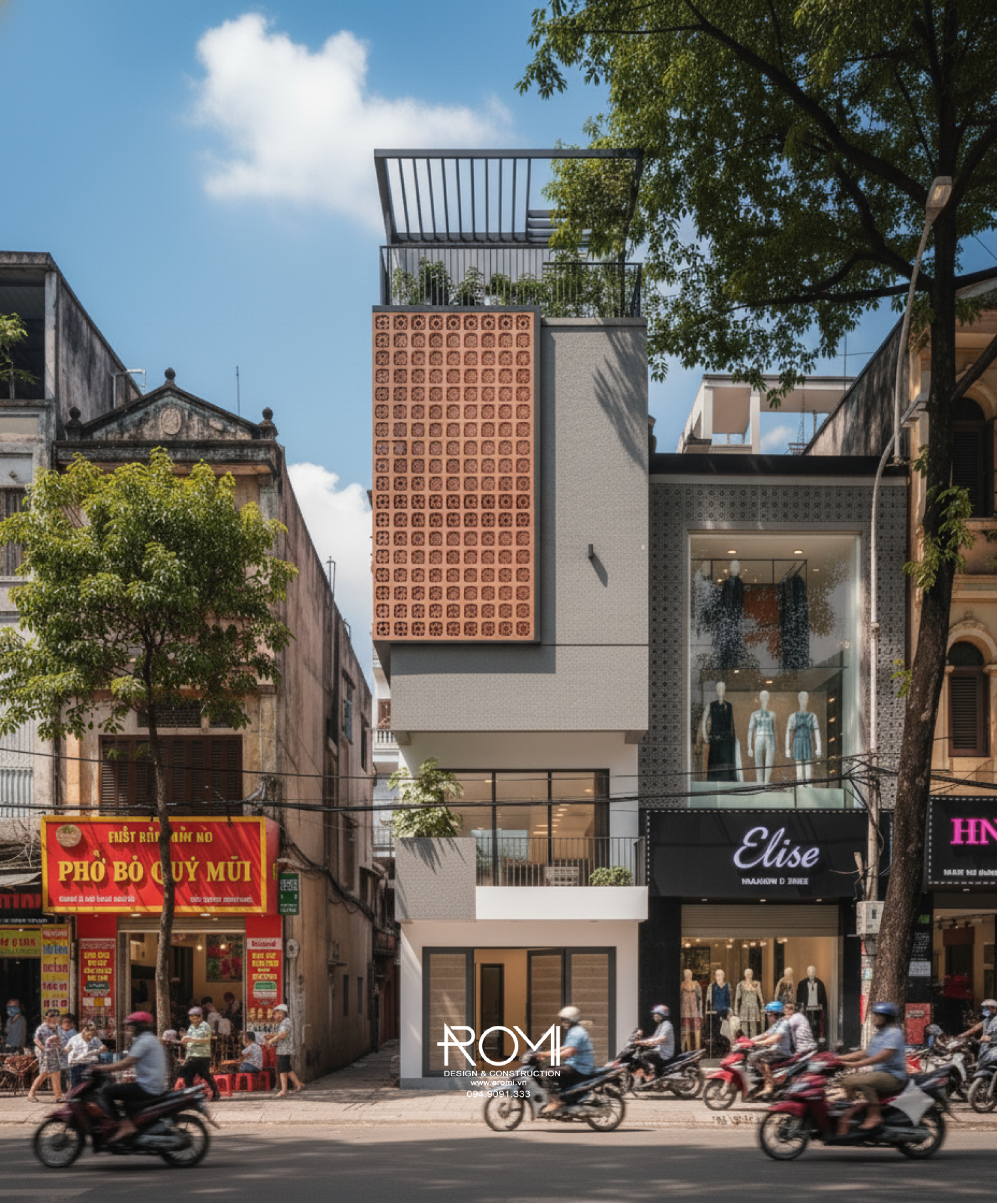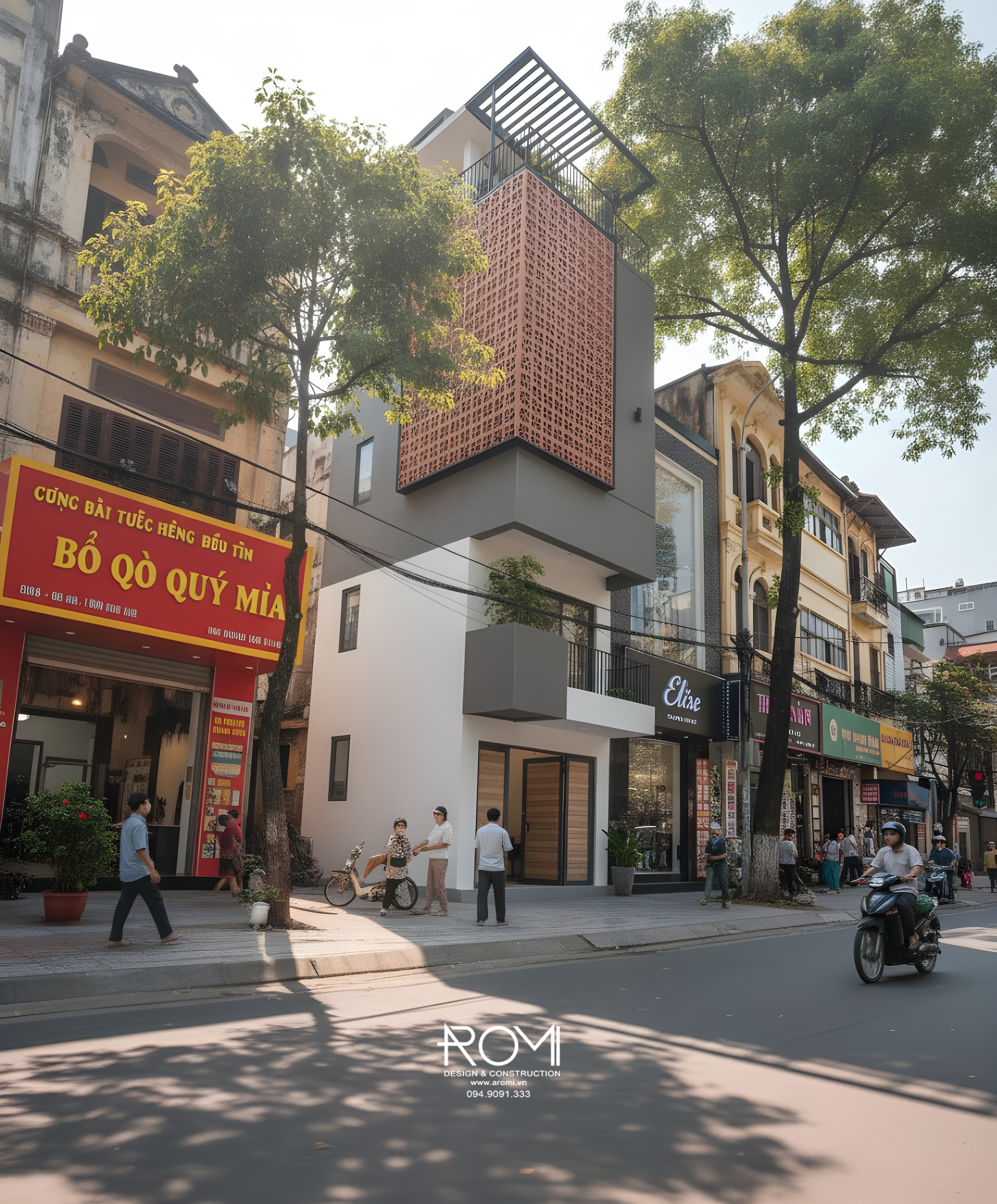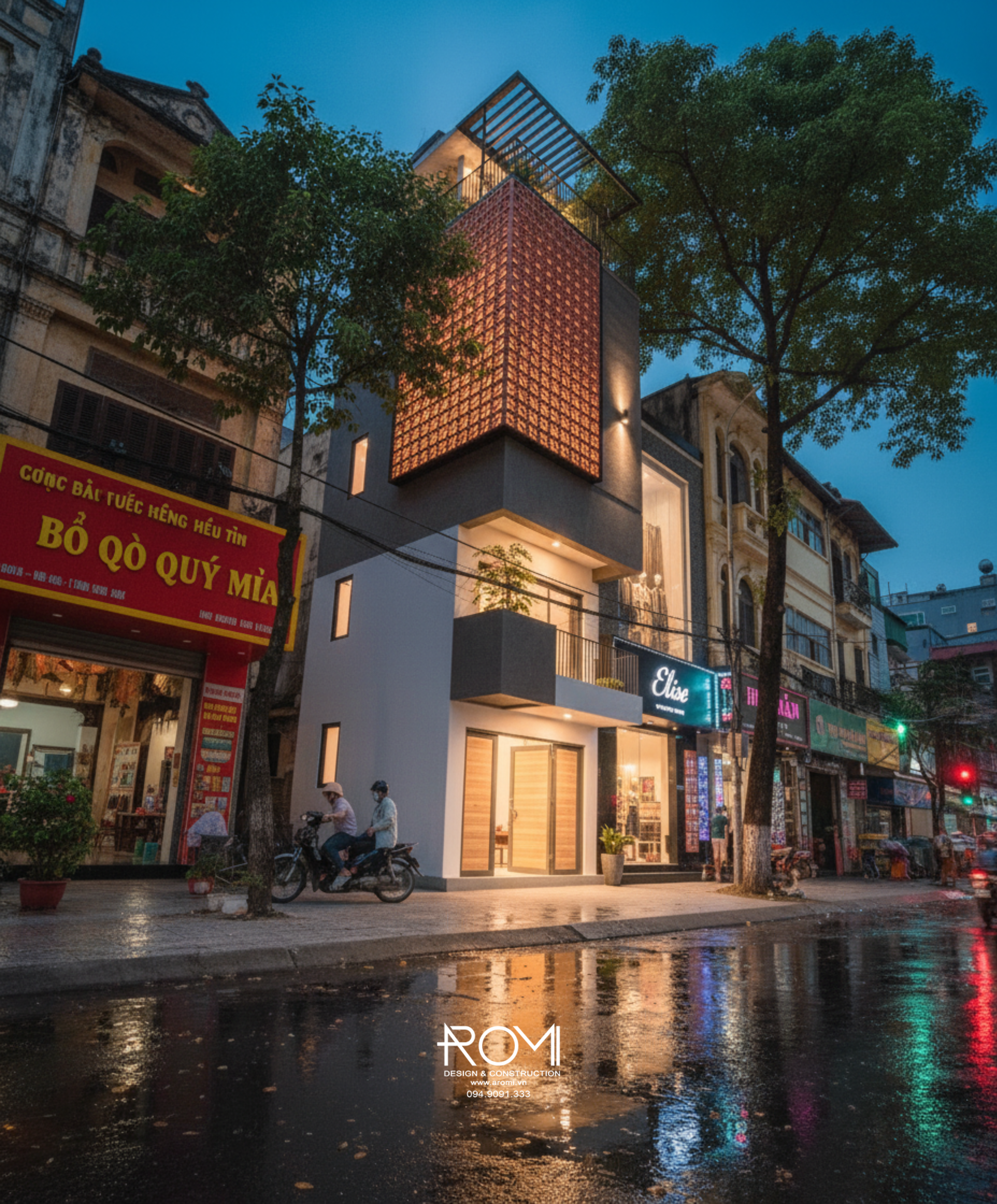 Giữa những bức tường rêu phong của thời gian, một chấm phá đầy táo bạo và dứt khoát xuất hiện. Những khối hình học hiện đại cùng mảng gạch đỏ gồ ghề không ngần ngại đứng cạnh nét cổ kính, tạo nên một sự đối lập đầy cuốn hút. Ngôi nhà này không tìm cách hòa nhập mà khẳng định cá tính riêng biệt của mình, mang đến một làn gió tươi mới và đầy sức sống, chứng minh rằng sự đổi mới luôn có chỗ đứng trong câu chuyện của quá khứ.